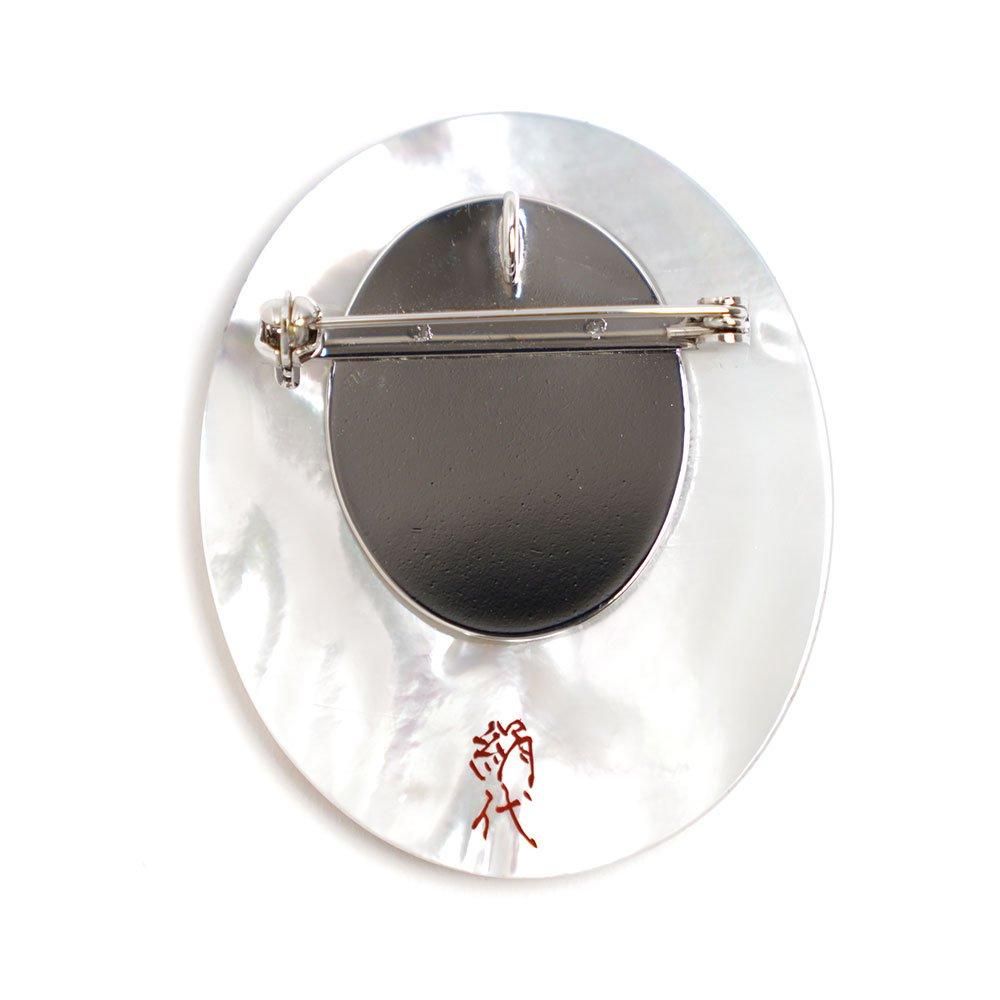 〔 作品名 〕 富士山とふくろう蒔絵 白蝶貝ブローチ( Brooch with Mt.Fuji and owls design in maki-e )