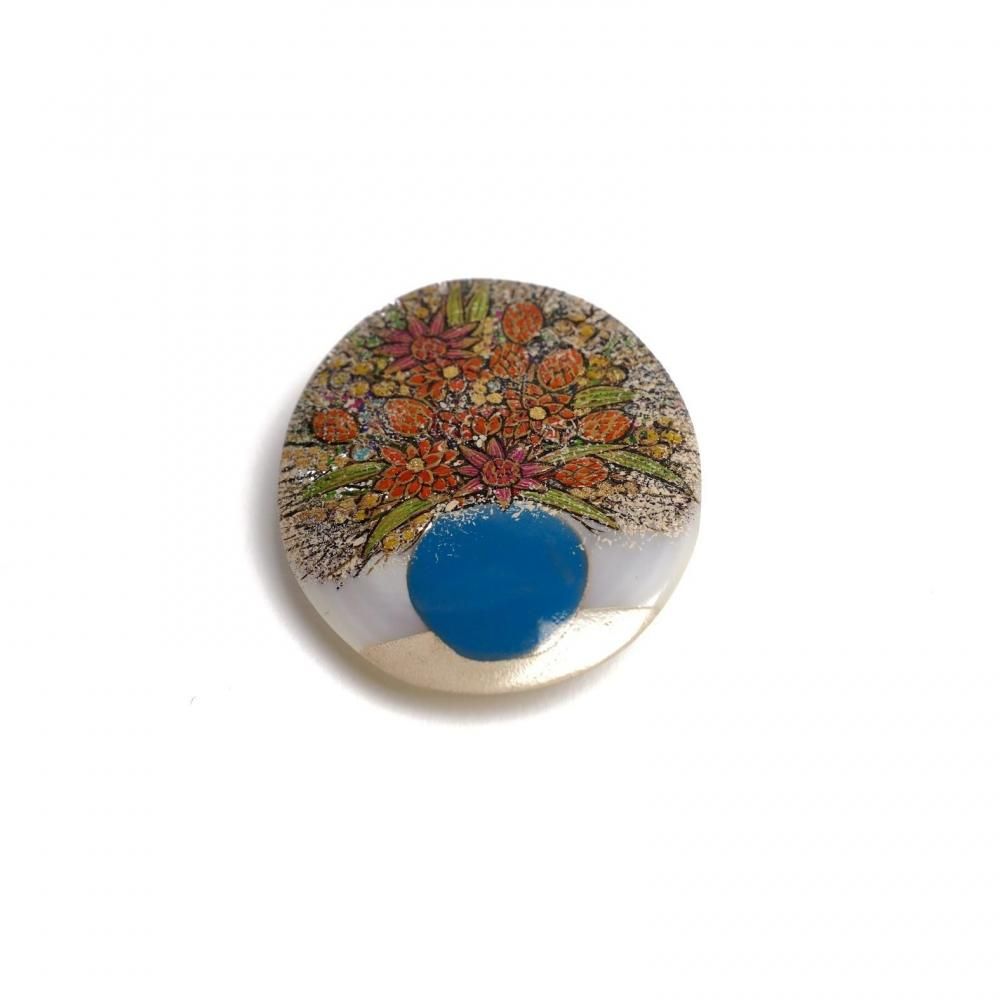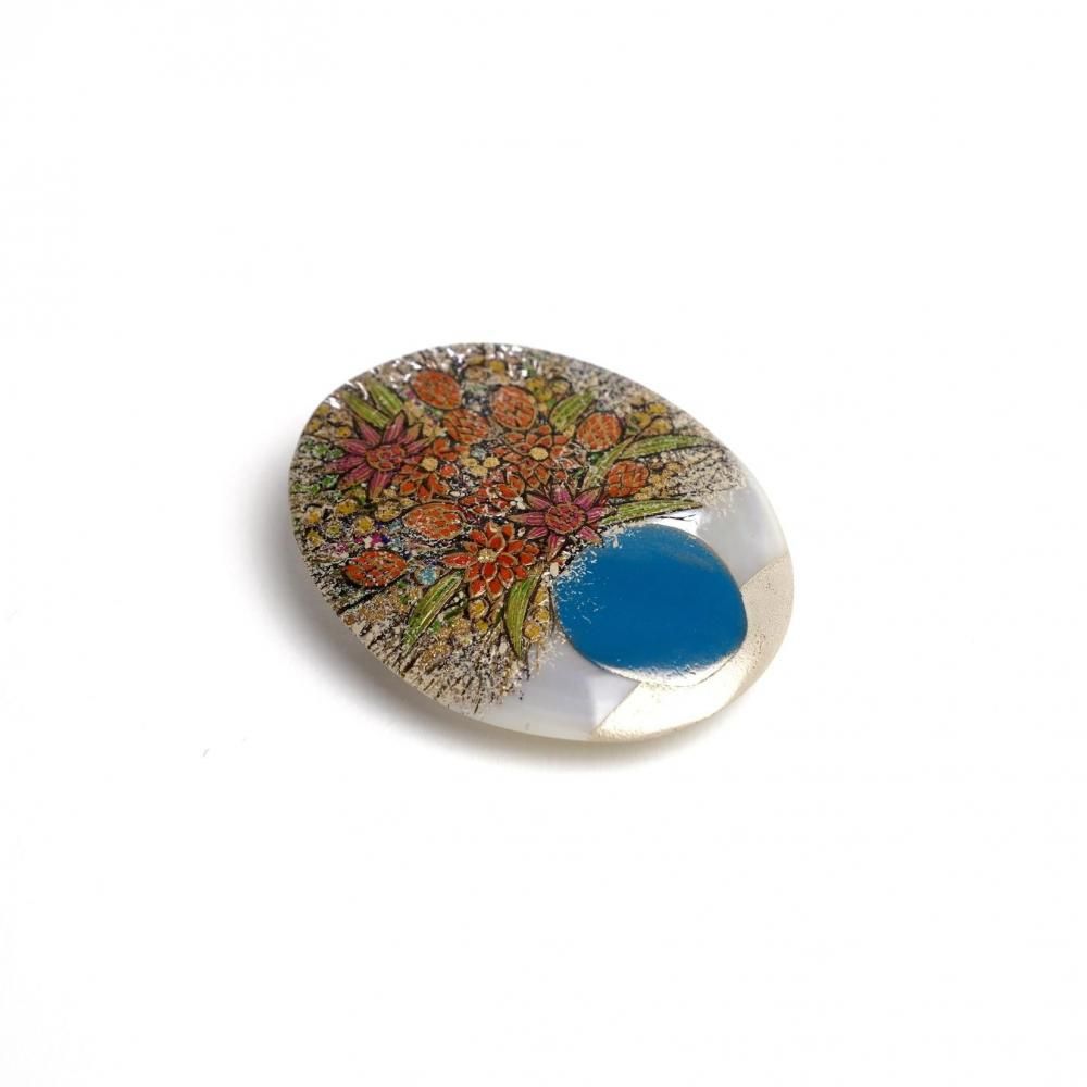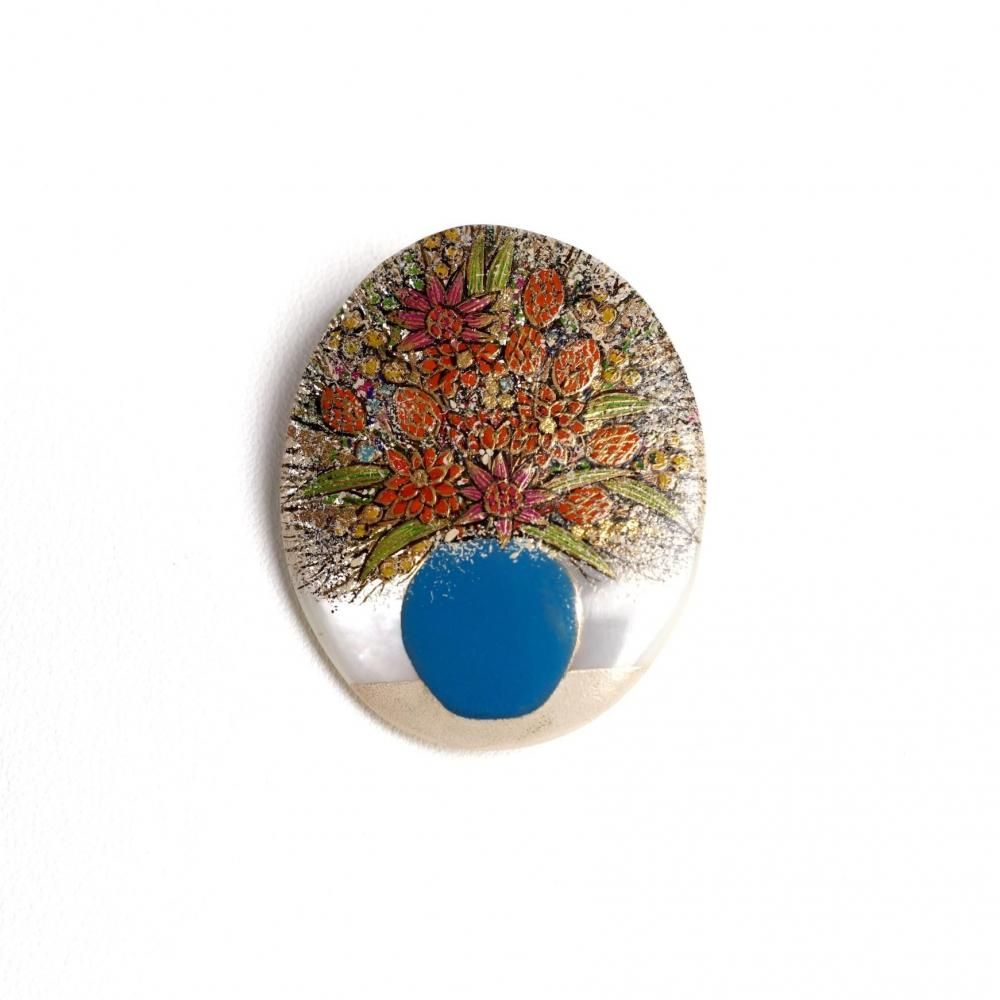 ドライフラワー青壺蒔絵白蝶貝ブローチ【2025-2026 カタログNo.9掲載品】