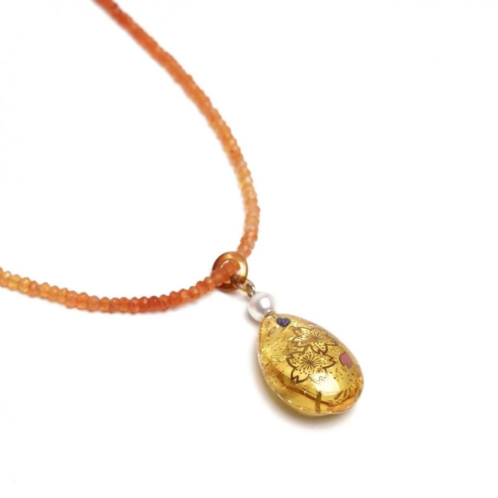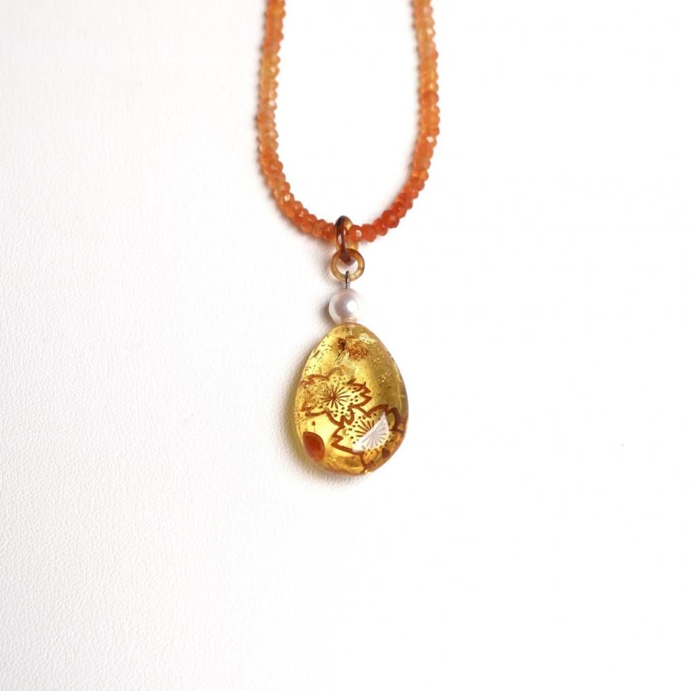 桜蒔絵琥珀ペンダント【2025-2026 カタログNo.9掲載品】