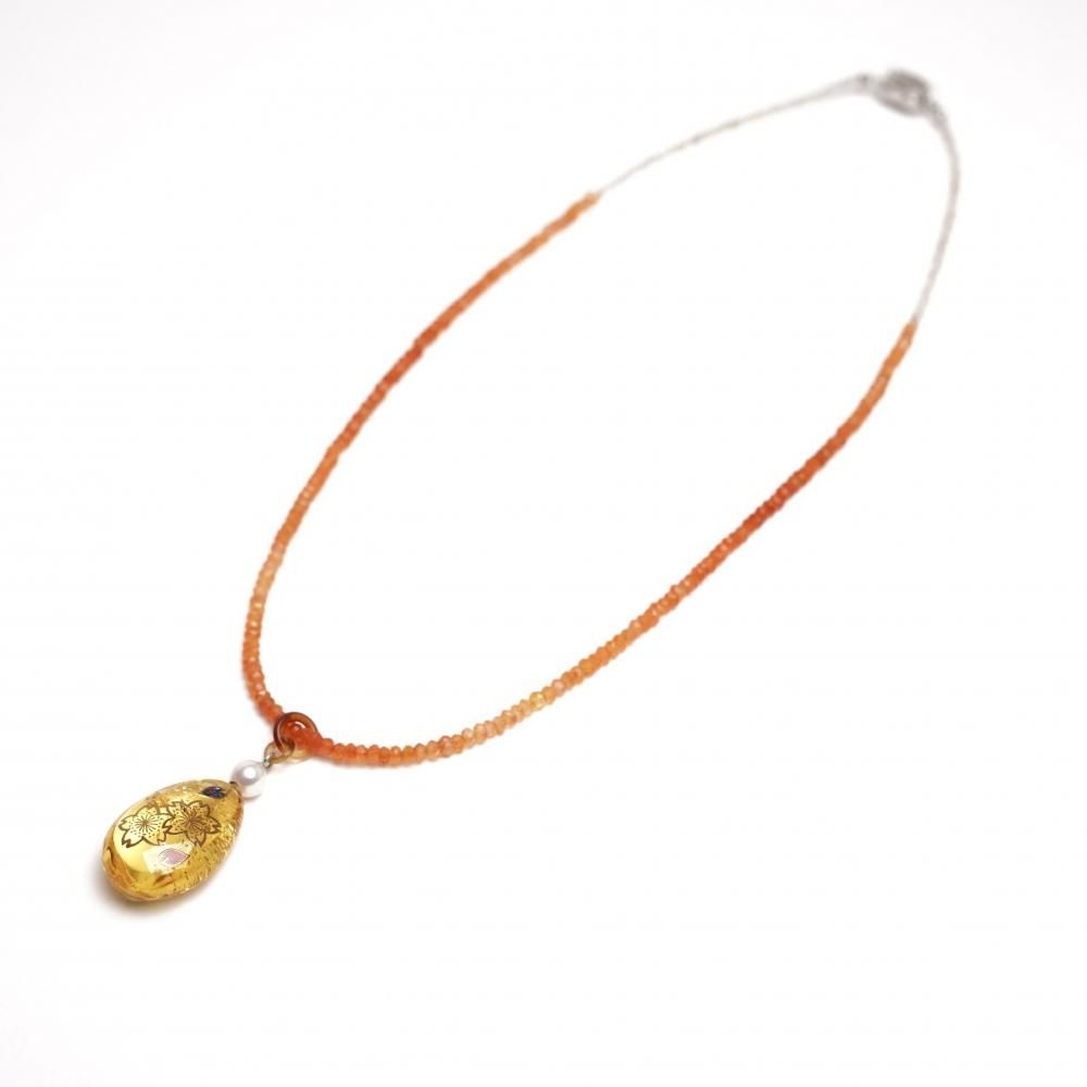 〔 素材 〕琥珀、漆、金粉、カーネリアンビーズ