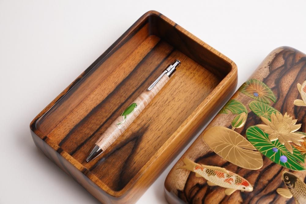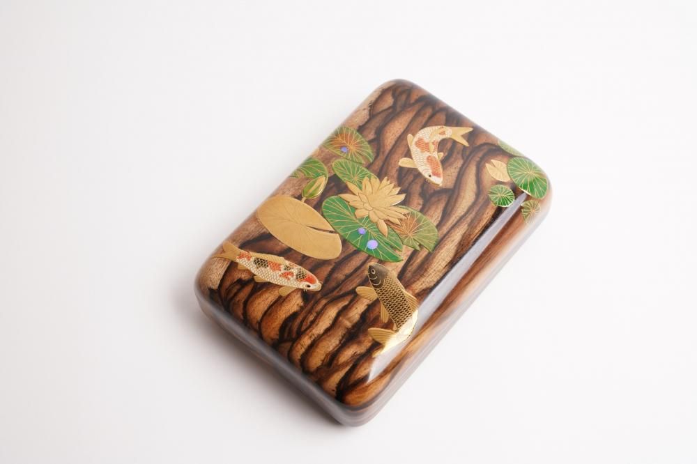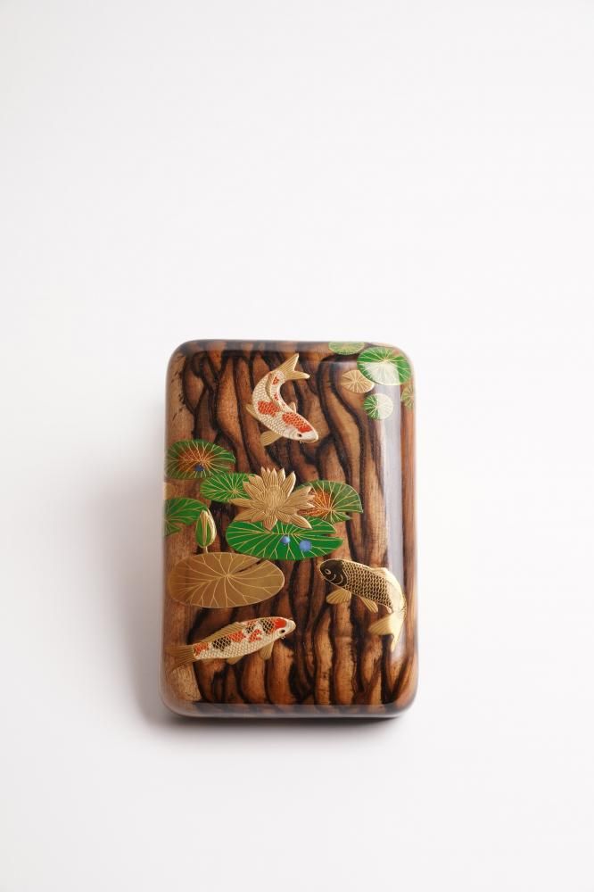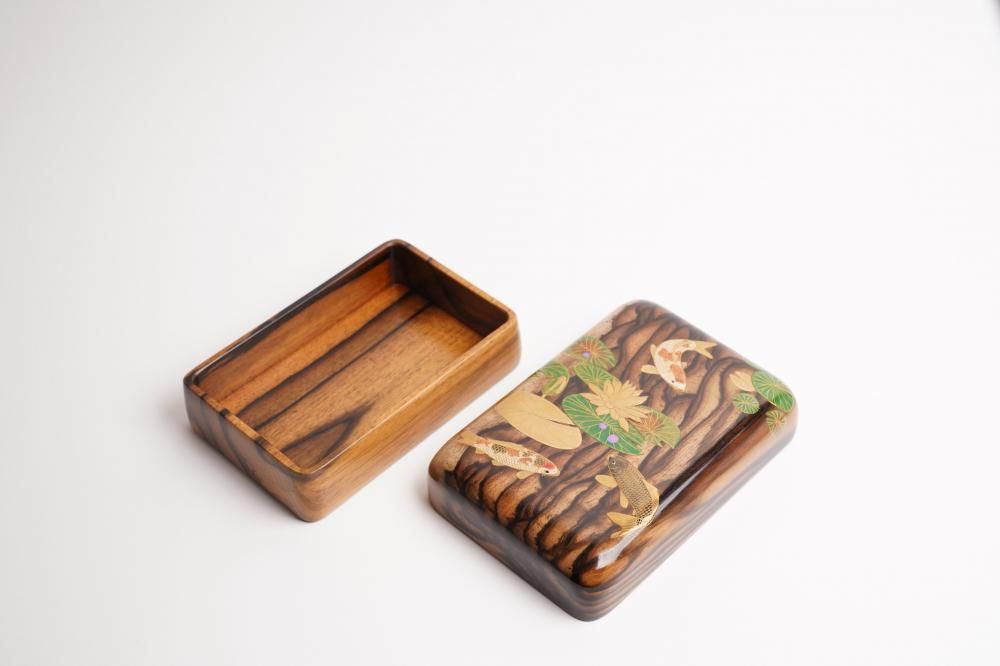 〔 作品名 〕睡蓮に錦鯉蒔絵黒柿文具箱