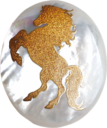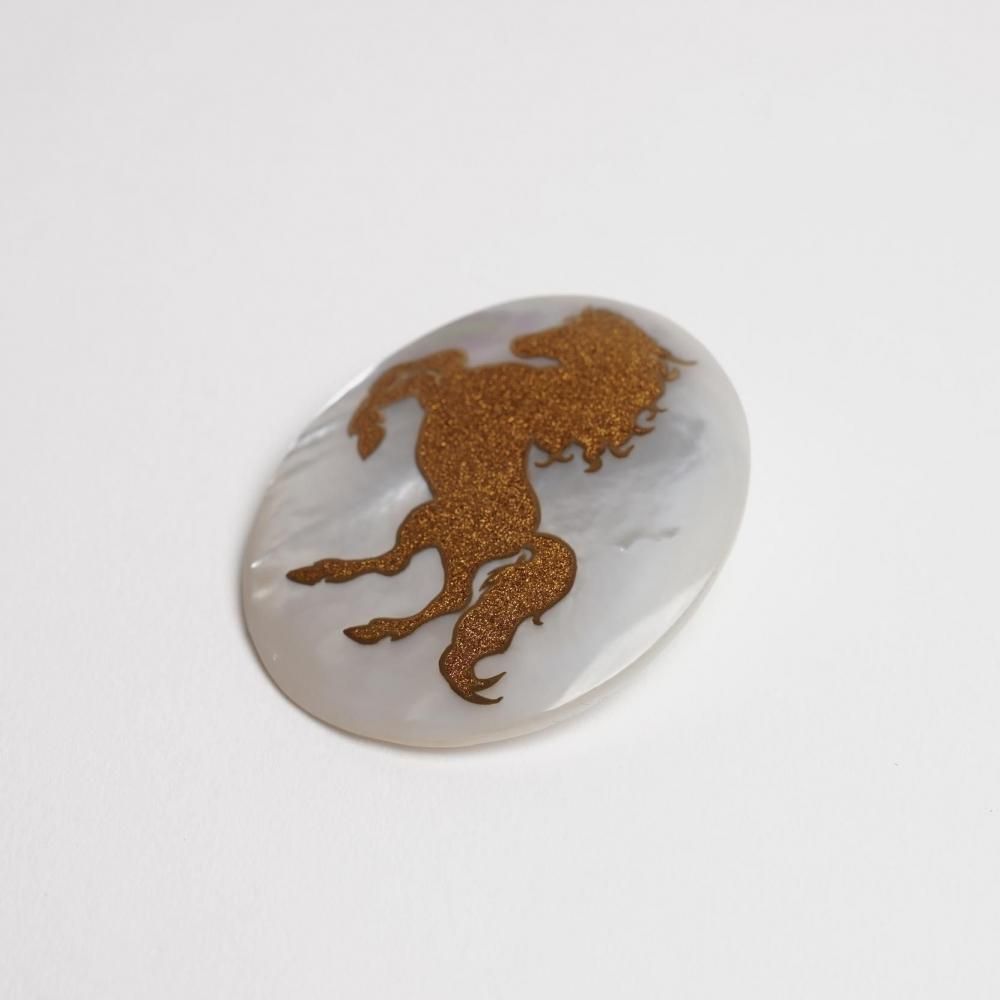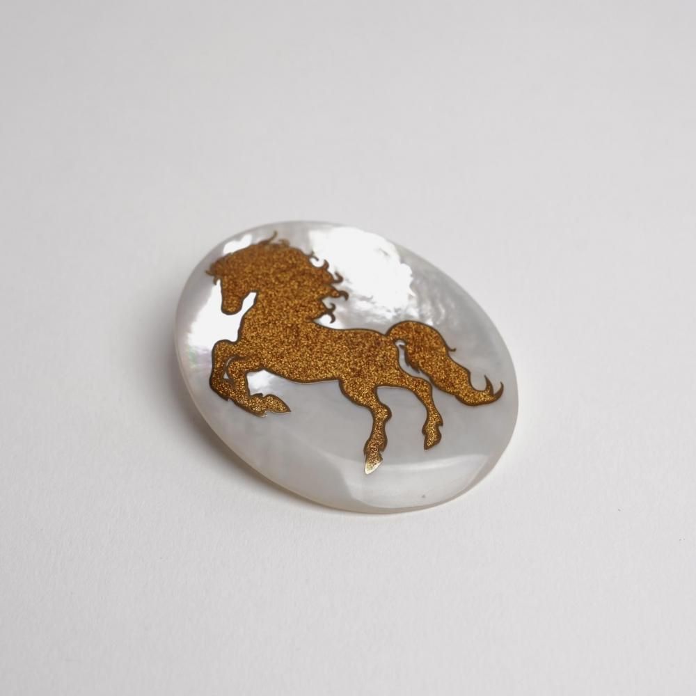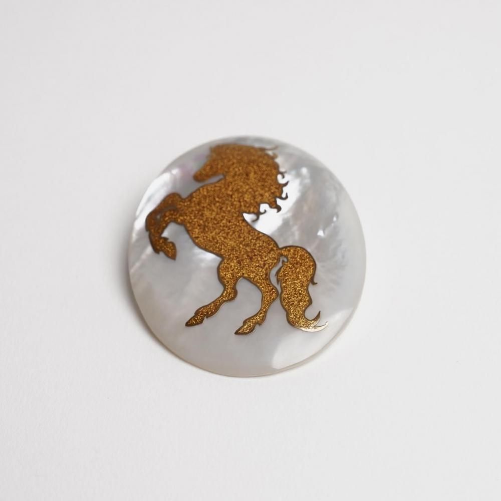 〔 作品名 〕跳馬蒔絵白蝶貝ブローチ