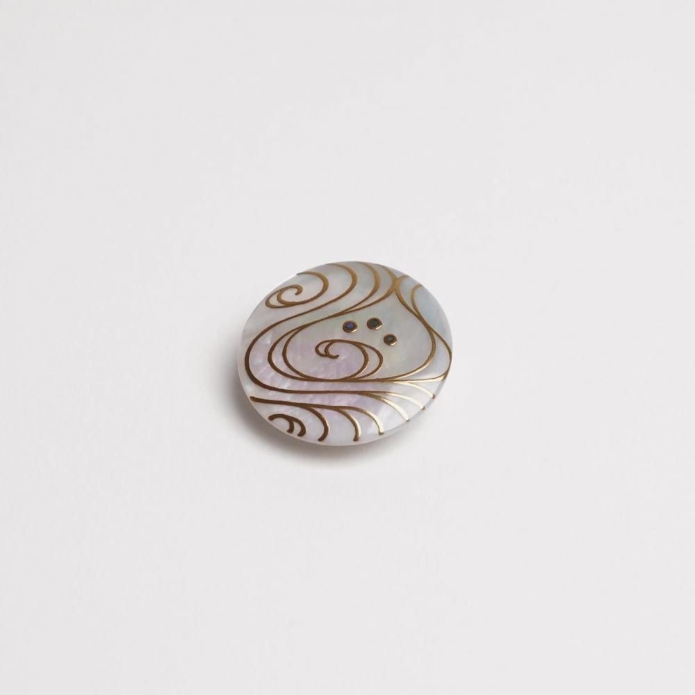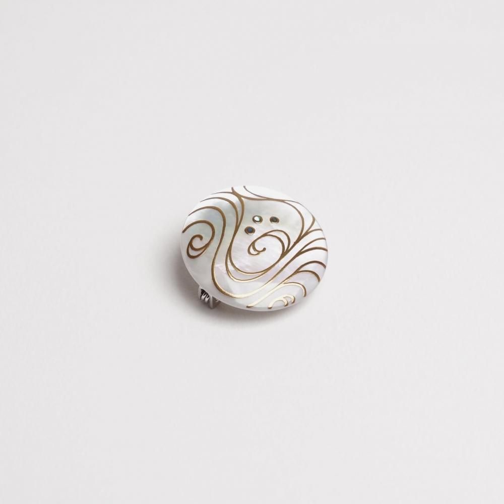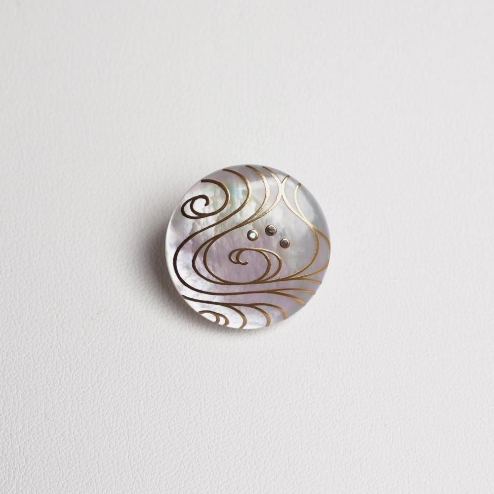 〔 作品名 〕流水蒔絵白蝶貝ブローチ25mm丸