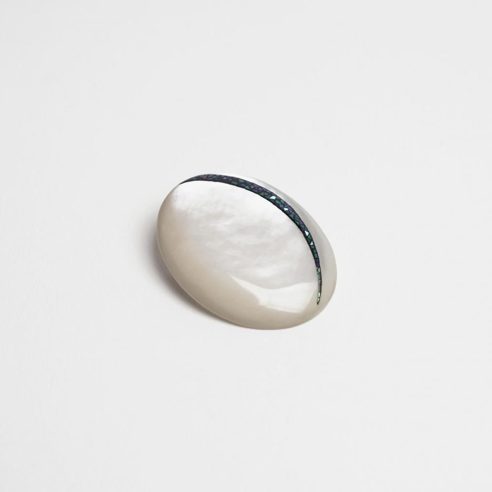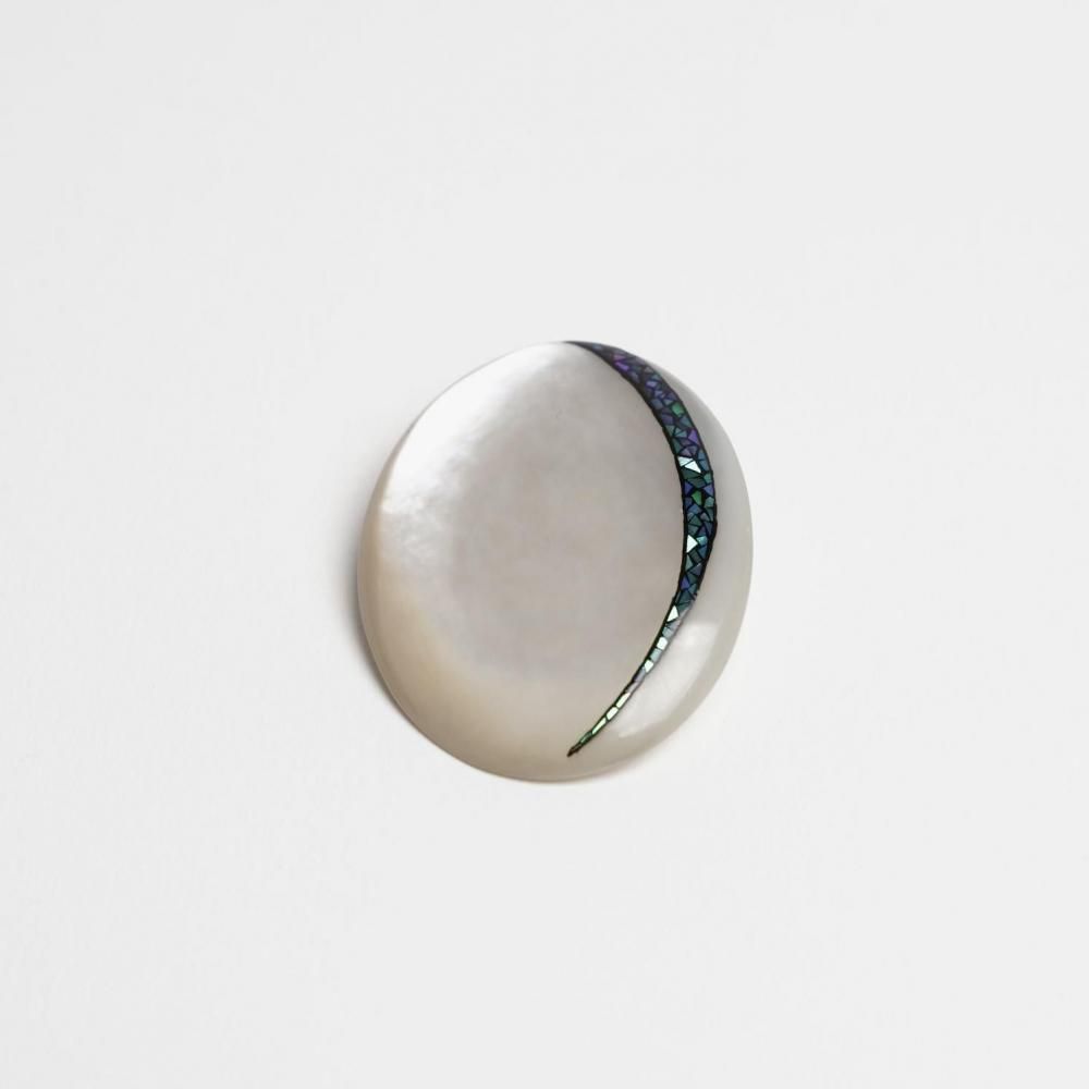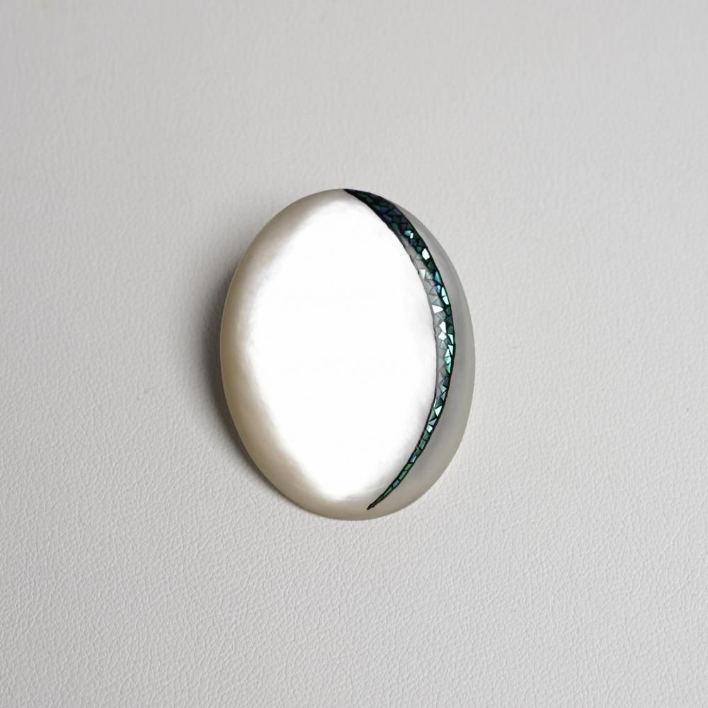〔 作品名 〕月螺鈿蒔絵白蝶貝ブローチ小