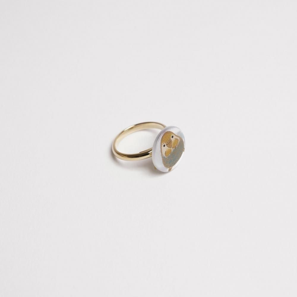 セキセイインコ蒔絵白蝶貝指輪【2025-2026 カタログNo.9掲載品】